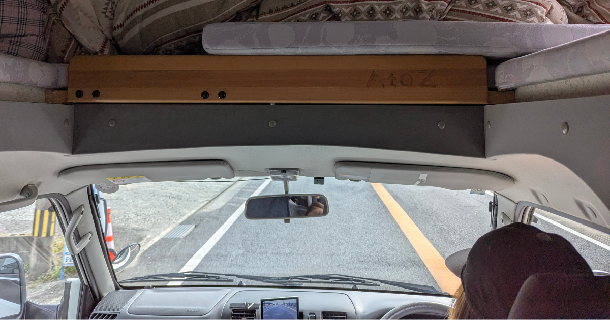 バンクベッドの構造上、後席に座ると前方の景色がほとんど見えません。横の窓からは景色が見えますが、「どこまで来たの?」「もう着く?」という子どもの期待には応えにくいです。